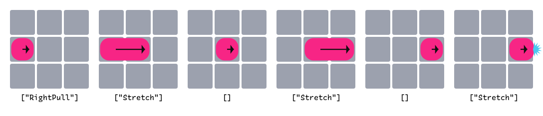 Sensory Input: To begin, our agent will have just one sensory input: Stretched. This is proprioceptive input indicating whether it is currently stretched (over two-patches) or contracted. We will add further sensors later.
