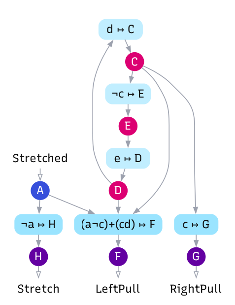 We can put this together in a simple AND program that does basic navigation. We can now produce a regulatory diagram with these labels.